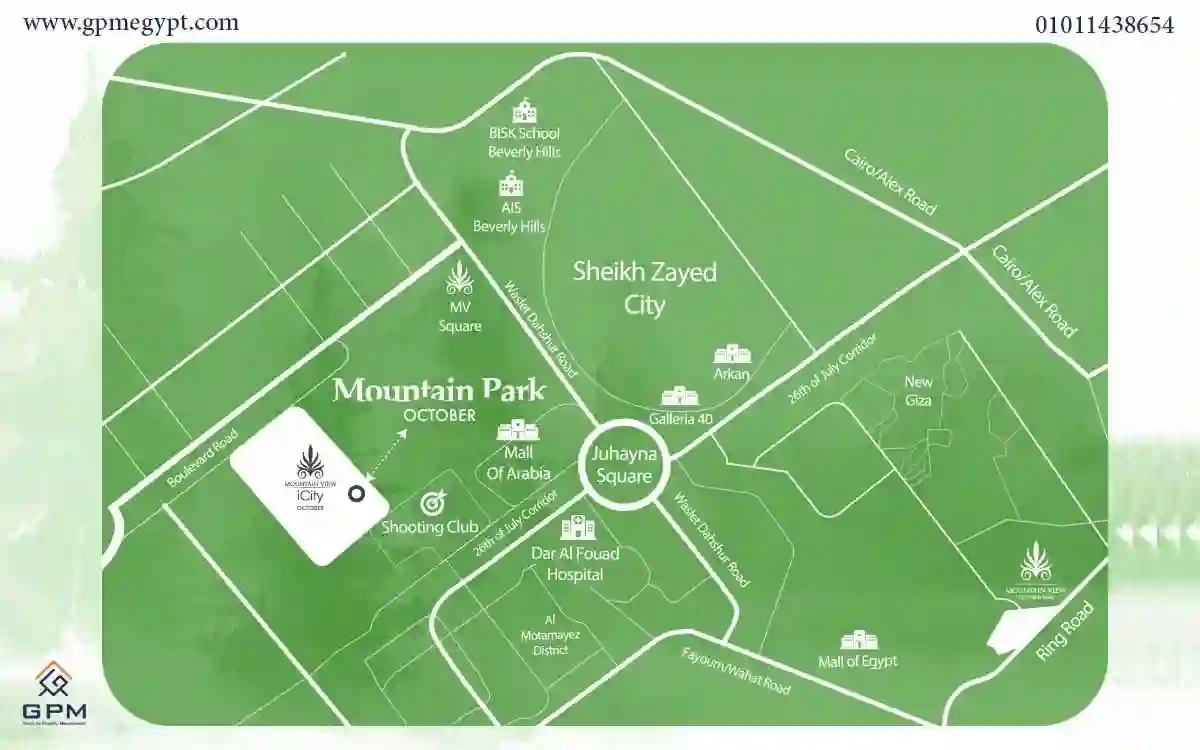 إسم المشروع: كمبوند ماونتن فيو اي سيتي. موقع المشروع: اكتوبر. إسم المطور العقاري: شركة ماونتن فيو للتنمية العقارية. نوع الوحدة: توين هاوس. مساحة الوحدة: تبدأ من 310 متراً مربعاً. سعر الوحدة: يبدأ من 12,400,000 جنيهاً مصرياً. عدد الغرف: 5 غرفة. عدد الحمامات: 5 حمام. أنظمة الدفع: دفع 5% كمُقدم حجز ثم 10% كدفعة ثانية عند التعاقد وباقي المبلغ على 6 سنوات.